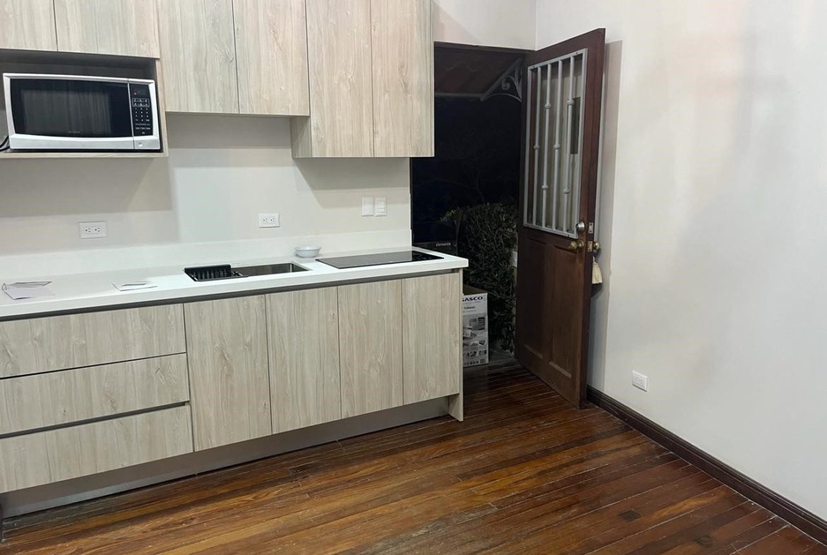 Precioso condominio tipo estudio y esta recién remodelado. Consta de sala, comedor, cocina y área de pilas. El condominio esta ubicado en un segundo piso. Tiene excelente ubicación