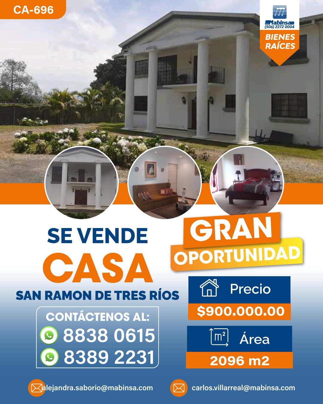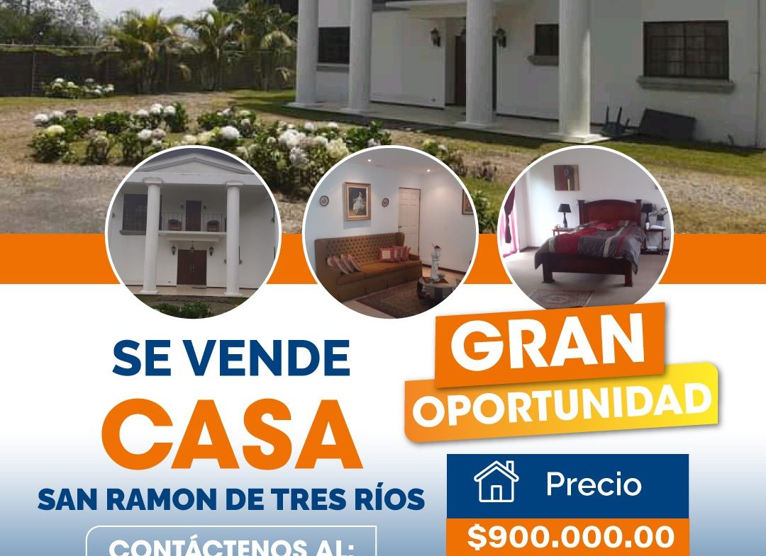 🏡CA-696 SE VENDE CASA – San Ramón de Tres Ríos / Precio $900.000,00
