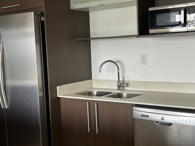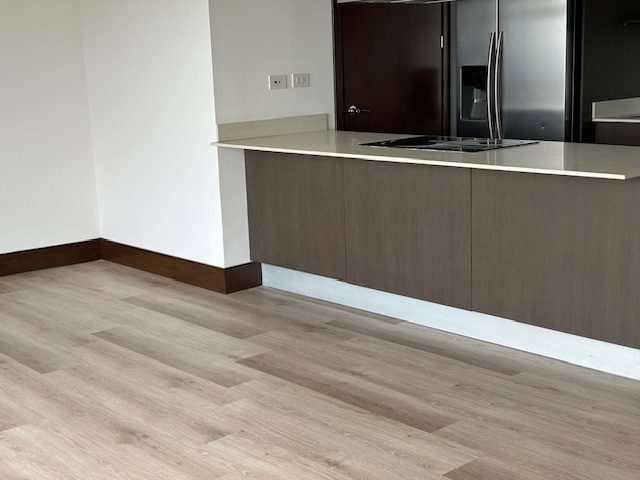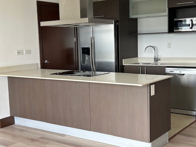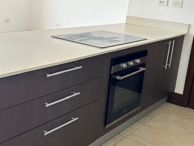 Condominio remodelado con distribución abierta entre sala, comedor y cocina. Incluye línea blanca completa: refrigeradora, plantilla, horno, microondas y lavaplatos.