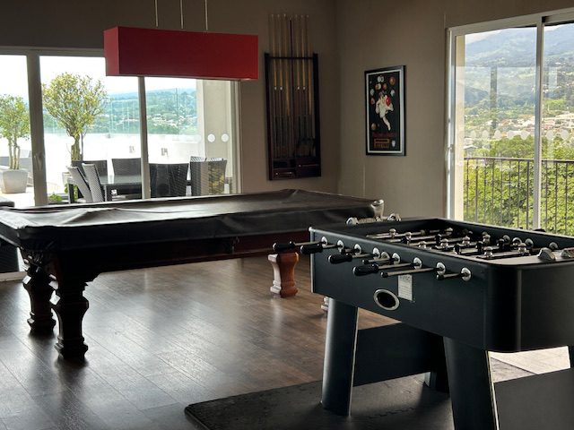 Gimnasio, área de BBQ, mesa de billar, sala de TV y espacio para reuniones.